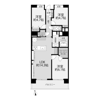 さらに、2つの約4.7帖の洋室には、それぞれ収納スペースが備わっているので、洋服や日用品が多くても困ることはありません。
