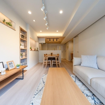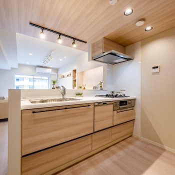 約14.3帖の広々としたLDKは、インテリアカウンターが付いており、家族の集まる空間にぴったりです。