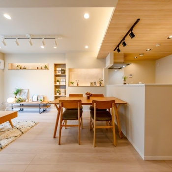 約14.3帖の広々としたLDKは、インテリアカウンターが付いており、家族の集まる空間にぴったりです。